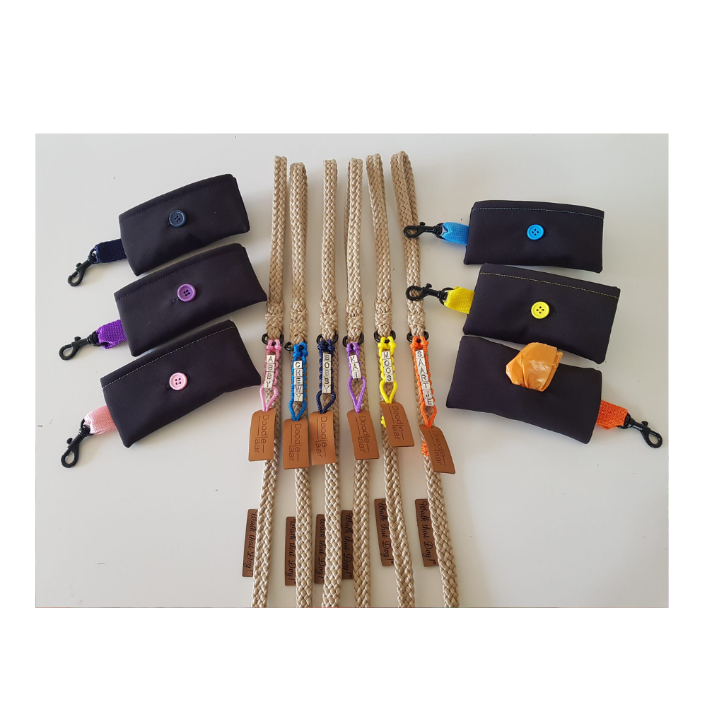 Jachtlijnen, ofwel snelle uitlaters, in de kleur beige met bijpassende poepzakjeshouders