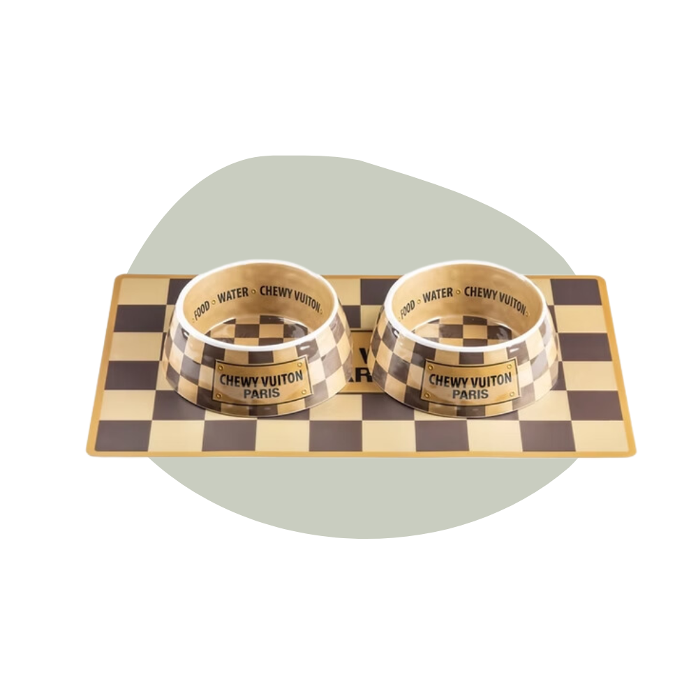 Deze te gekke placemat van Chewy Vuiton is ontworpen in de klassieke bekende kleuren en vormen. Een echte eyecatcher in huis!