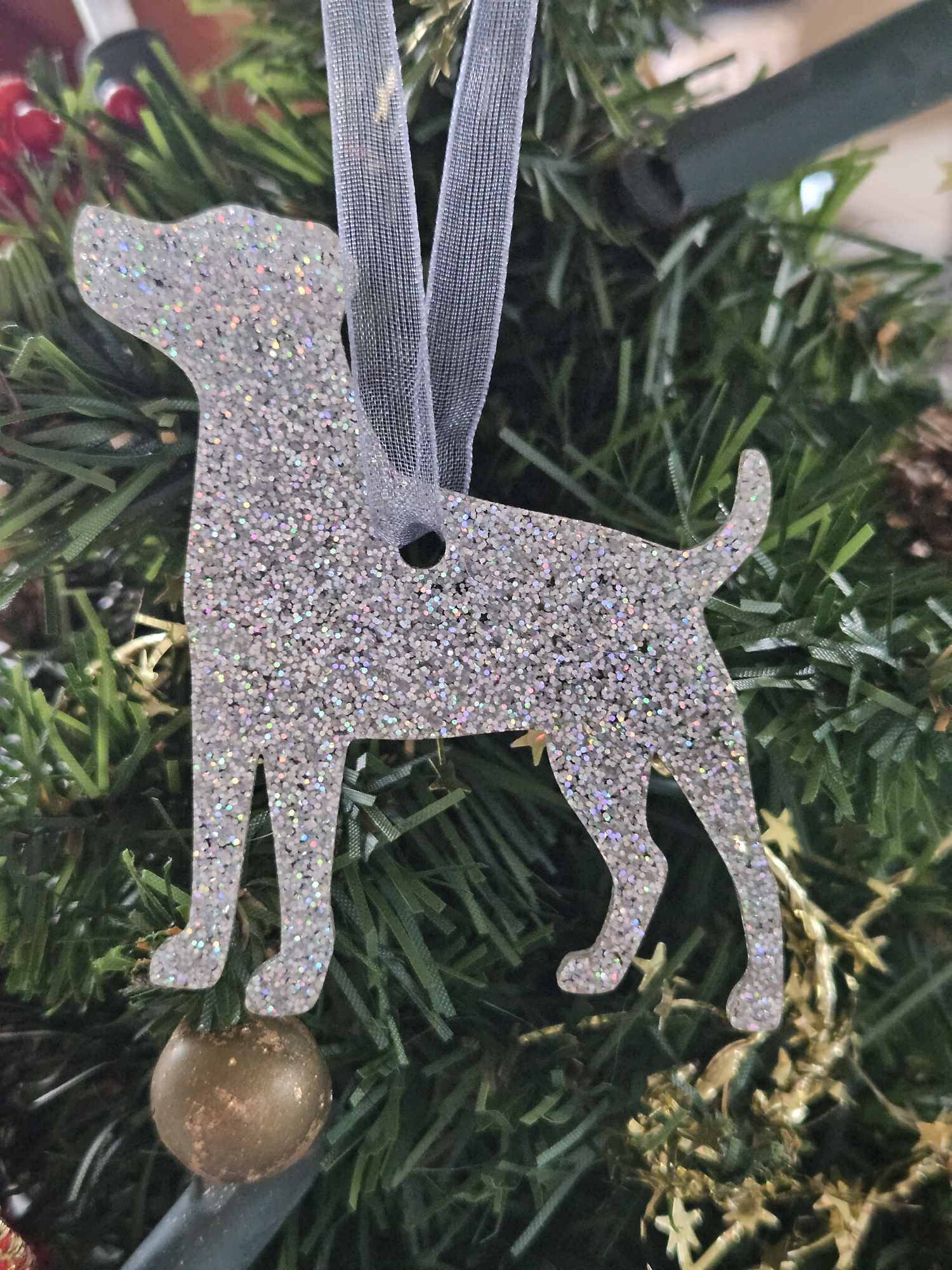 Kersthanger - Terriër zilver