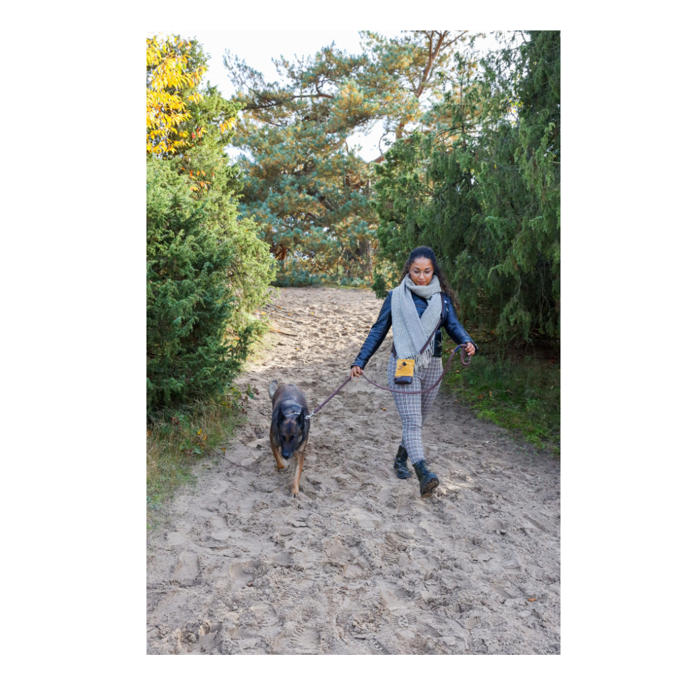Met musketonhaak: De robuuste musketonhaak zorgt voor een snelle en veilige bevestiging aan de halsband of het tuig van jouw hond.